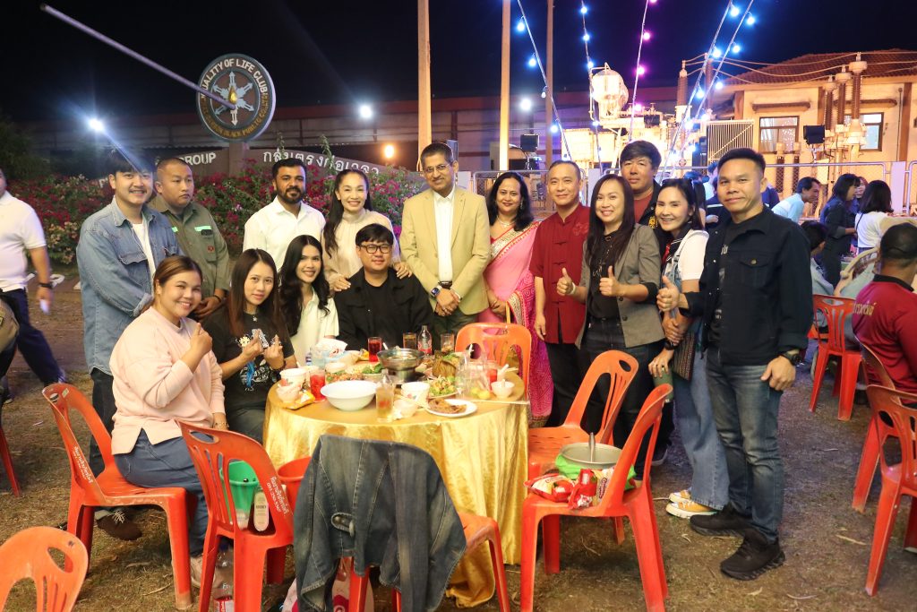 ช่วงค่ำในวันเดียวกันภายในงานได้มีการจัดเลี้ยงอาหาร (โต๊ะจีน) เพื่อเป็นการเฉลิมฉลองเลี้ยงต้องรับปีใหม่ 2569 และมีการมอบรางวัลให้แก่ผู้ร่วมงาน (พนักงาน) โดยมีนายไพบูลย์ ศุภบุญ รองผวจ.อ่างทองประธานในพิธีเป็นผู้จับรางวัล และมีผู้บริหารของในเครือบริษัทฯ มิสเตอร์ อมิต กุมาร ประธานการผลิตประจำภูมิภาคเอเชีย ยูเบลา เชา ประธานบริษัท เบอร์ล่า คาร์บอน (ไทยแลนด์ ) จำกัด (มหาชน) นางสาวอติกานต์ ปิ่นสุข ผู้จัดการทั่วไปฝ่ายทรัพยากรมนุษย์ นางสาวฐิติพร สมบัติศิระสกุล ผู้จัดการอาวุโสฝ่ายทรัพยากรมนุษย์ และนายอภิชาต ปัทมโรจน์ ผู้จัดการอาวุโสฝ่ายคลังสินค้าร่วมเป็นผู้จับและมอบรางวัลให้แก่พนักงานผู้โชคดีที่อยู่ภายในงานดังกล่าว โดยรางวัลใหญ่เป็นทองคำรูปพรรณ และรางวังอื่นๆ เป็นเงินสดนับหมื่นบาทจำนวน 5 รางวัลด้วยกัน
