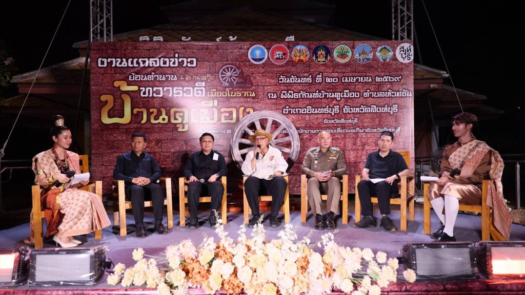 นายวราดิศร อ่อนนุช ผู้ว่าราชการจังหวัดสิงห์บุรี เป็นประธานในการแถลงข่าว งานย้อนตำนานทวารวดีเมืองโบราณบ้านคูเมือง ประจำปี พ.ศ.2569 โดยมีนายปฏิญญา สันติชาติงาม ท่องเที่ยวและกีฬาจังหวัดสิงห์บุรี พลตำรวจตรีชัยรพ จุณณวัตต์ ผู้บังคับการตำรวจภูธรจังหวัดสิงห์บุรี นายแพทย์วิญญู จันทร์เนตร นายแพทย์สาธารณสุขจังหวัดสิงห์บุรี นายสมศักดิ์ เกี้ยวเกิด นายอำเภออินทร์บุรี ร่วมแถลงข่าว พร้อมด้วยหัวหน้าส่วนราชการ นายกองค์การบริหารส่วนตำบลห้วยชัน ท่องเที่ยวและกีฬาจังหวัดอ่างทอง สื่อมวลชน และประชาชนเข้าร่วมในการแถลงข่าว
