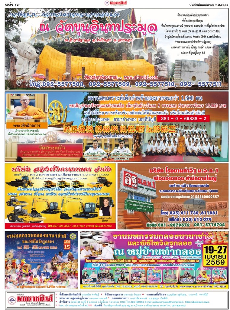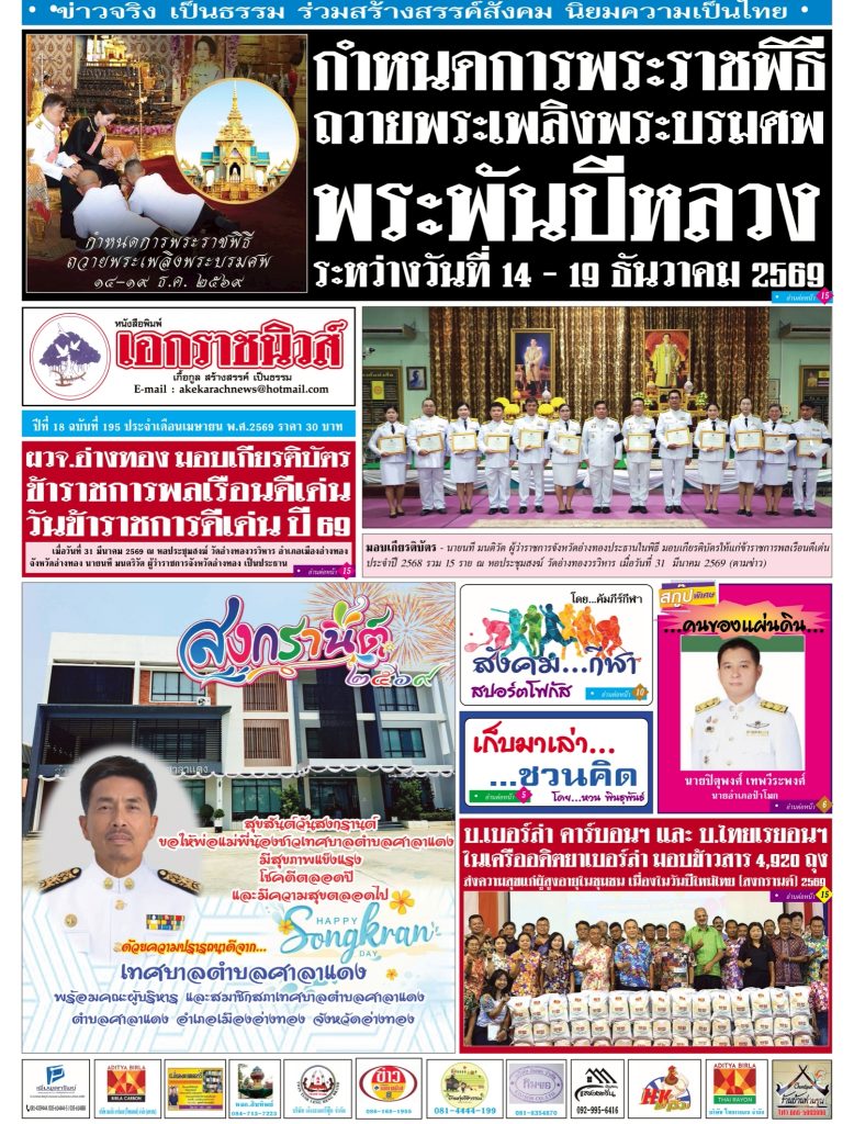 ข่าวท้องถิ่น หนังสือพิมพ์เอกราชนิวส์ประจำเดือนเมษายน2569″สุขสันต์วันสงกรานต์” admin 10 เมษายน 2026 Share นายสาทร คชวงษ์/บรรณาธิการข่าว FacebookFacebookXTwitterLINELine